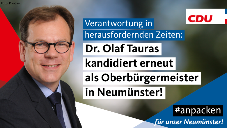 Dazu teilt der Kreisvorsitzende Wolf Rüdiger Fehrs mit: „Wir freuen uns, dass sich Dr. Olaf Tauras für eine erneute Kandidatur entschieden hat. Unsere Stadt steht vor großen Herausforderungen und wir haben keine Zeit für Experimente. Dr. Olaf Tauras hat in zwei Amtszeiten bewiesen, dass er die Stadt nachhaltig positiv gestalten und Ökonomie, Ökologie und Soziales sinnvoll miteinander verknüpfen kann. Die gesamte CDU Neumünster freut sich auf einen spannenden und erfolgreichen Wahlkampf mit und für ihn.“